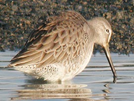 - 今津では今年もオオハシシギが姿を見せていると言う事で見に行ってみましたが、オオハシシギのいつもいる場所は、光線の関係で午後からの干潮時しかうまく見られません。従って私にとっては写真が撮りにくいのです。この個体だけなんでしょうか、行動範囲が狭い鳥だと思います。