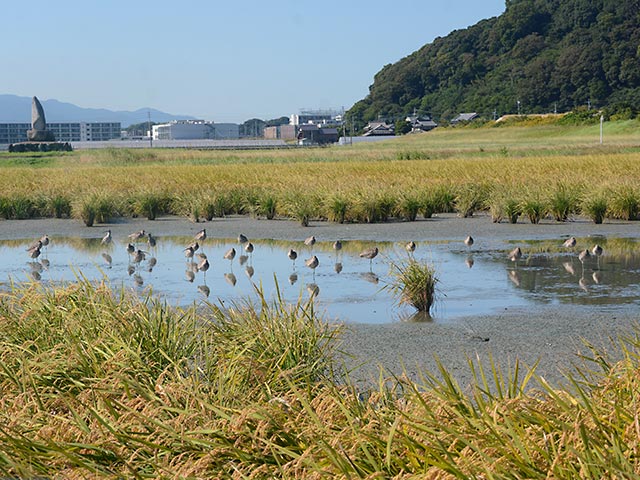 今津の田んぼのホウロクシギは26羽まで増えていました。