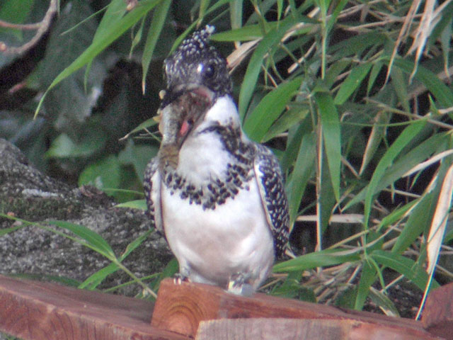 - 白黒の鹿子模様をした大形のカワセミ類。