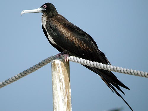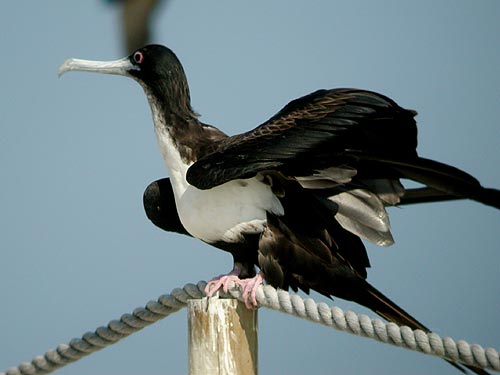- 雄は赤い喉袋を膨らませて求愛行為をする大型の海鳥。